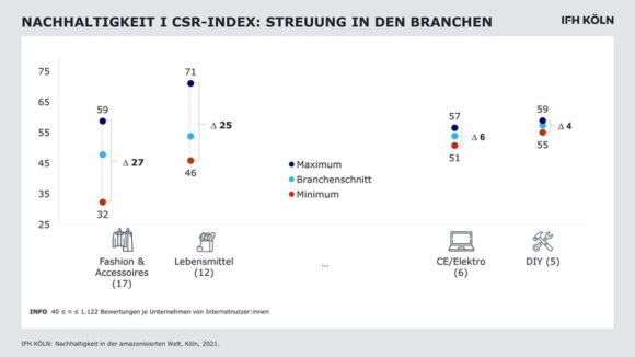 Nachhaltigkeit – Studie des IFH Köln im Bereich Handel – CSR-Index: Streuung in den Branchen