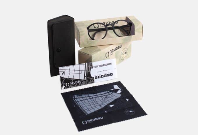 Auch das Zubehör für die Neubau-Brillen wird unter dem gleichen Gesichtspunkt der Zweckmäßigkeit und Ökologie hergestellt. Das Etui für alle natural-PX-Fassungen wird auf Zellulosebasis und ohne Klebstoff hergestellt, was es leicht recycelbar macht; das Reinigungstuch besteht aus recycelten Kunststoffflaschen und ist nur in recycelbarem Papier verpackt. Auch die am Point of Sale vertriebenen Marketingmaterialien werden mit ausgewählten Materialien von umweltfreundlichen Lieferanten hergestellt.