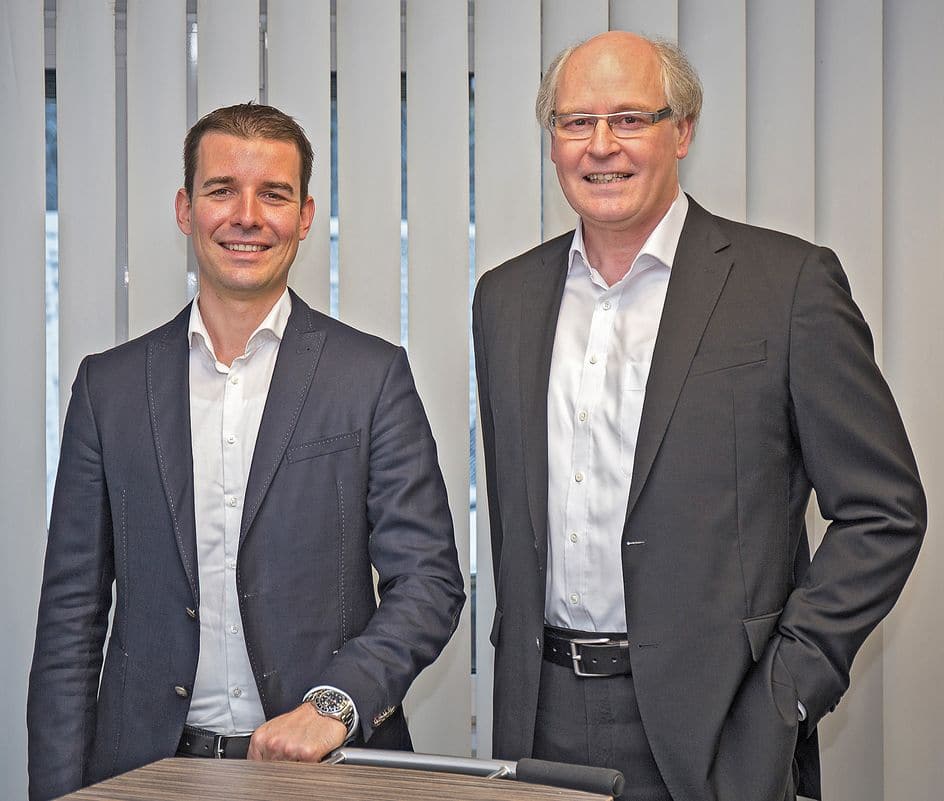 Philip Lehmann (links) und Rainer Cordes, Geschäftsführer der Otto Kind GmbH & Co. KG sowie der Harres Metall-design GmbH (Foto: HarresKind)