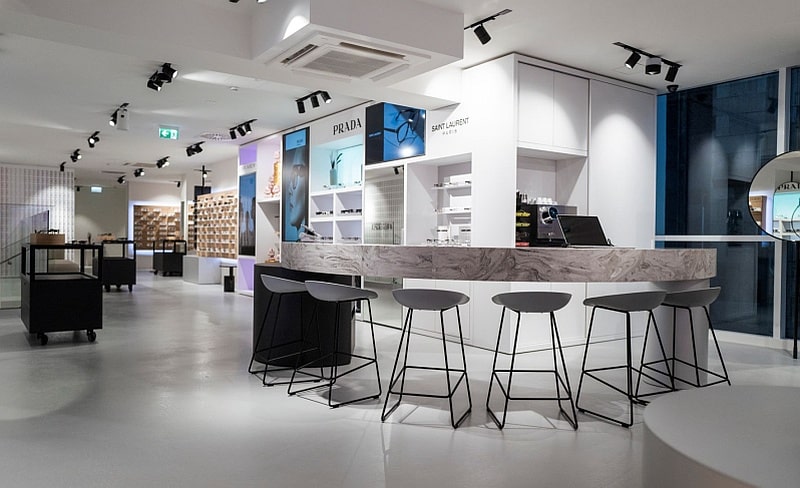 Neu im Flagship-Store sei die Trendwall, die Lifestyle-Welten mit aktuellen Trends und Highlight-Brillen sowie Accessoires präsentiere. Im Zentrum der Produktpräsentation im Obergeschoss stehe neben der Bar die „Brand Stage“, auf der sich die Marken analog und digital inszenieren können.