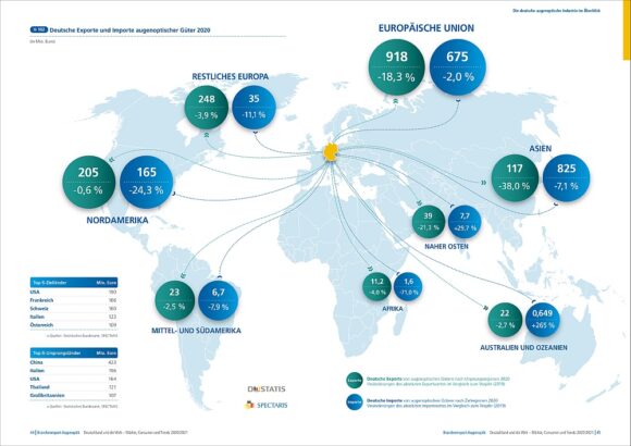 Übersicht Augenoptik-Außenhandel (Quelle: Branchenreport Augenoptik 2021 von Spectaris und ZVA)