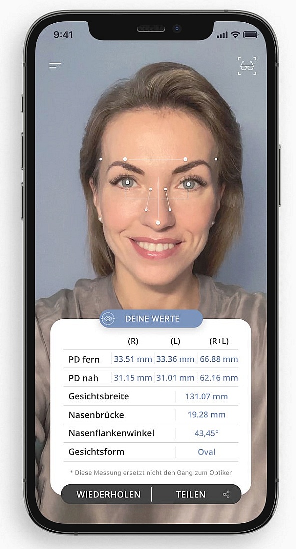 Neben Werten für die Gesichtsbreite und die Gesichtsform werden die für Augenoptiker wichtigen Kennzahlen der Brückenweite und des Nasenflankenwinkel gemessen. Auch die wichtige Pupillendistanzmessung sei über das Modul möglich. Dabei werden die Werte für Links und Rechts ebenso ermittelt wie die Nah- und Fern-PD – mit einer Genauigkeit von 0,2 mm, so Headrix.