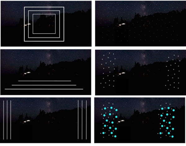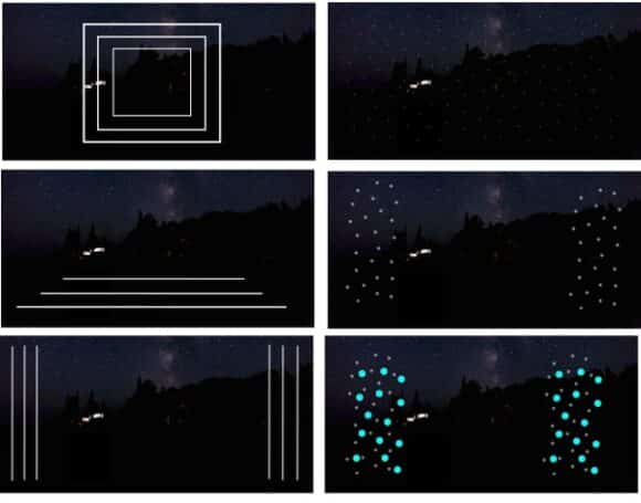 Die Erfinder entwickelten eine AR-Brille (Augmented Reality), mit der optische Anhaltspunkte eingeblendet werden können. Die Muster können aus verschiedenen geometrischen Formen bestehen (wie z.B. Linien, Quadrate, Punktmuster) und unterschiedliche Tiefen-Informationen darstellen. Die optischen Anhaltspunkte werden am Rand des Gesichtsfeldes eingeblendet, um das Gesichtsfeld nicht unnötig einzuschränken. Bei Bewegungen bleiben diese optischen Muster fest in der Szene und bewegten sich nicht mit dem Kopf mit.