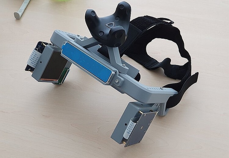 Prototyp einer speziellen Brille der Uni Konstanz, um die bevorzugte Position der Einblendung zu testen (Bild: Lorenz Assländer, Institut für Trainings- und Bewegungswissenschaften, UKN)