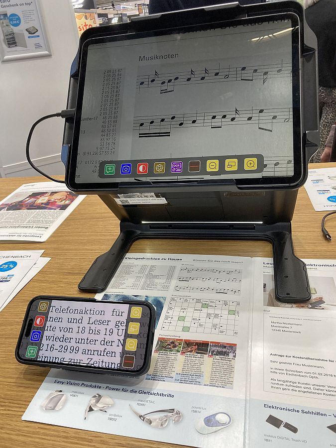 „Optaro“ und „Optaro XL“ können je nach Modell das iPhone oder iPad in eine vollwertige mobile Lesehilfe verwandeln. Eine kontrastreiche Benutzer-Oberfläche mit anpassbaren Symbolen ermöglicht eine übersichtliche Bedienung von diversen Features inklusive variabler Vergrößerung, Kontrastverstärkung, Leselinien und Vorlesefunktion.