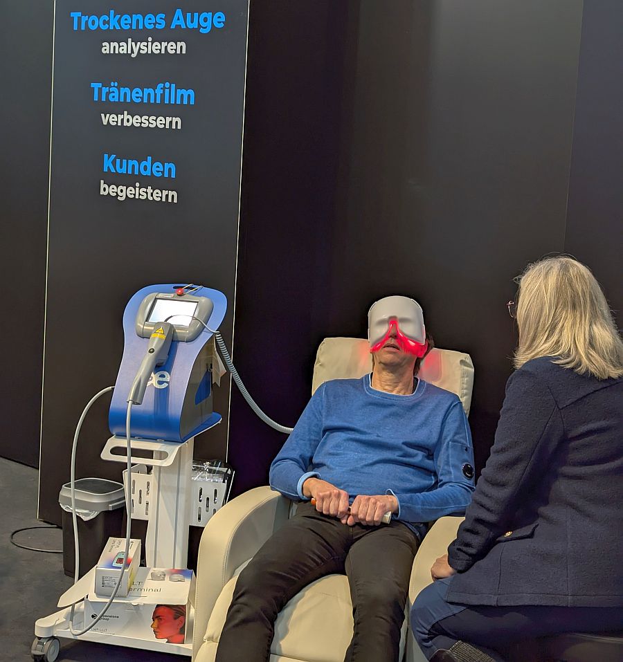 Ebenfalls auf Interesse stieß die my-mask von Espansione zur spürbaren Verbesserung des Tränenfilms. Die nicht-invasive In-Office-Anwendung auf Basis der LM Low-Level-Light-Technologie unterstützt die Funktion der Meibomschen Drüsen und kann Kontaktlinsen-Unverträglichkeiten reduzieren.