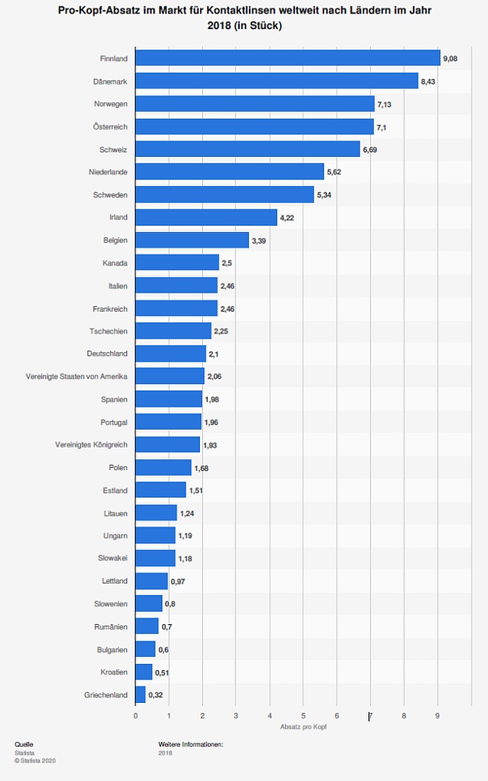 Kontaktlinsen Pro-Kopf-Absatz weltweit Statista
