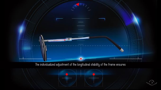 Die Schieflage durch das höhere Gewicht der Korrektionsgläser gegenüber den Demo-Scheiben wird durch ein verstellbares Gegengewicht an beiden Bügeln ausgeglichen.