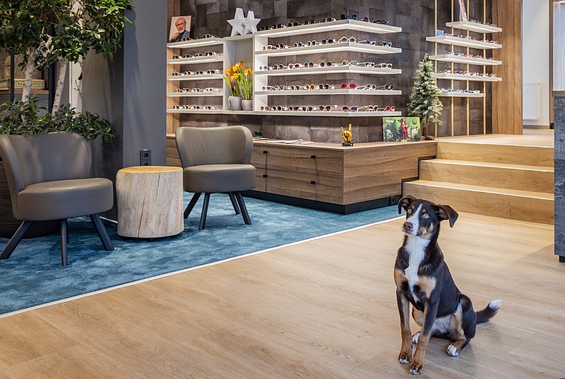 Augenoptik Luckas – Auch von der Farbgestaltung bekam das Geschäft eine neue Identität: Früher war alles rot, jetzt herrscht zurückhaltendes Petroleum-Grau vor
