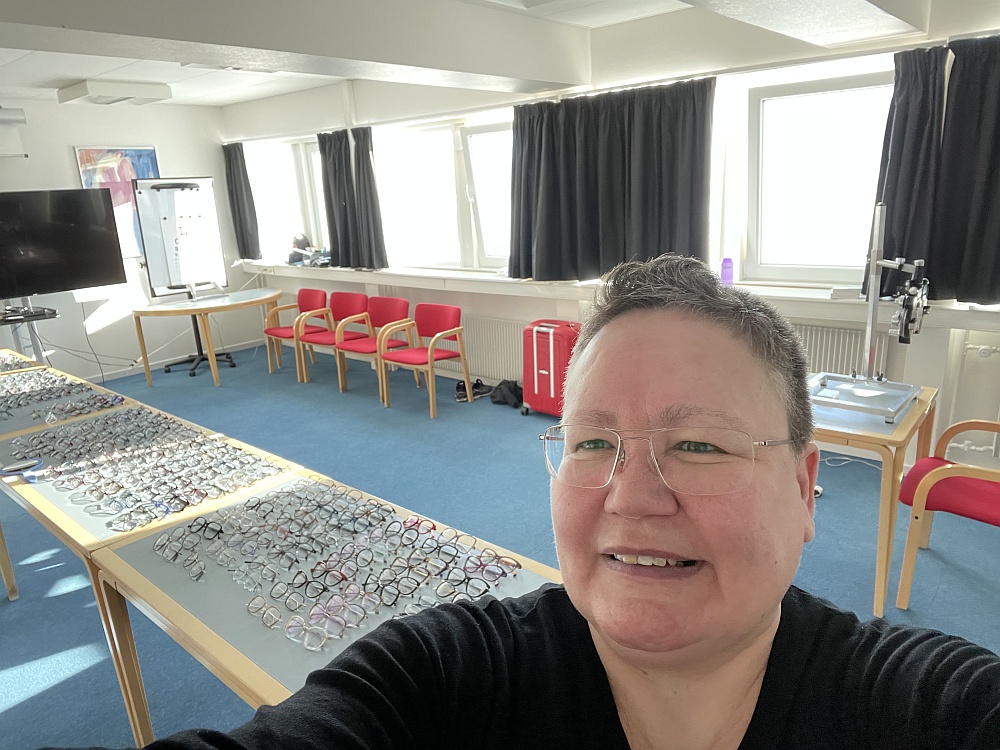 Als ich in Qaqortoq aufs Gymnasium ging, kam der Studienberater kurz vor den Sommerferien in alle Klassen und verlangte, dass wir in den Ferien darüber nachdenken sollten, was wir werden wollten. An diesem Tag sah ich auf dem Heimweg eine alte Dame, die mit schweren Tüten beladen nach Hause ging und eine Brille trug, die schief saß, weil der linke Bügel fehlte. Da war mir klar: Ich will Augenoptikerin werden und ein eigenes Geschäft eröffnen.