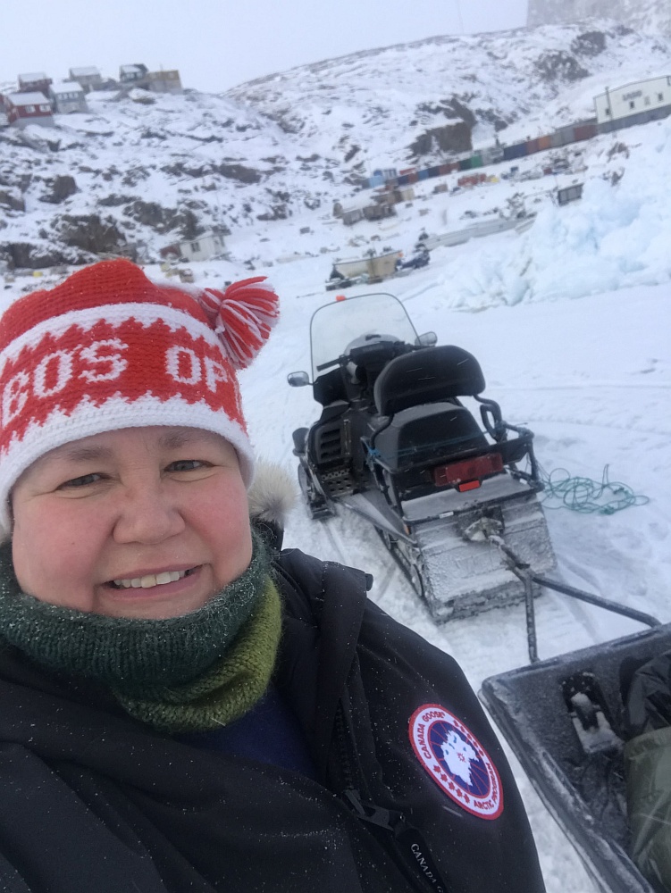 Bobo unterwegs mit dem Schneemobil zu Kunden im Uummanna-Fjord