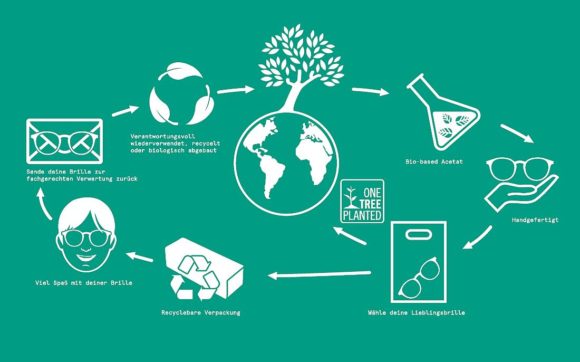 Im Modebereich lehnen es einer Umfrage vom Februar 2021 zufolge bereits 13 Prozent der über 16-Jährigen ab, ein Produkt zu kaufen, das nicht nachhaltig ist, 9 Prozent boykottieren entsprechende Marken sogar komplett (Quelle: Statista). Nur eine Frage der Zeit, bis diese Entwicklung bei der Brille ankommt. Da macht es Sinn, über Nachhaltigkeit nachzudenken: bei den Materialien, bei der Fertigung, am besten auch beim „Leben danach“, Stichwort Kreislaufwirtschaft.