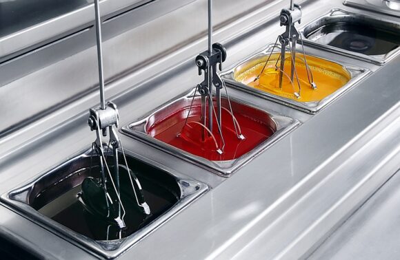 Im Colour-Studio werden Kunststoffgläser mit Tönungen, Farben für Sonnenschutzgläser, kontraststeigernden Farben und mit Farbfiltern hergestellt (Bild: Ophthalmica)