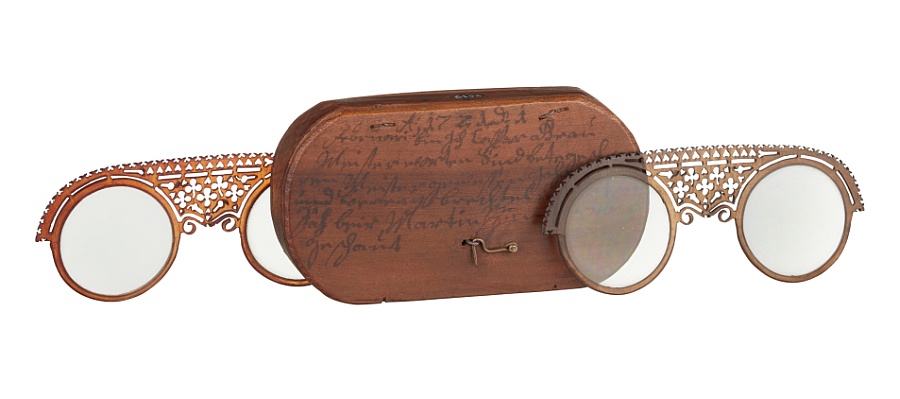diverse Brillen berühmter historischer Persönlichkeiten (darunter Robert Koch, Novalis, Jerôme Bonaparte – König von Westfalen, Kaiser Franz Josef I.);