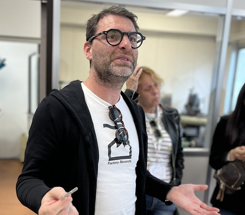 Die engagierte Yannick Jacob Eyer, Brand development Director, berichtete von dem Engagement des Unternehmens für mehr Nachhaltigkeit: „100 % unserer Brillengläser sind recycelt und wiederverwertbar.“ Seit Jahresanfang verwende Morel zudem recyceltes Acetat aus Produktions-Abfällen der Bekleidungs-Industrie. Der nur wenige Kilometer vom Firmensitz entfernte Kooperations-Partner Decoracetmodot liefert neue Acetatplatten, die durch Thermokompression unter Verwendung von Granulat aus Acetat-Abfällen hergestellt werden.