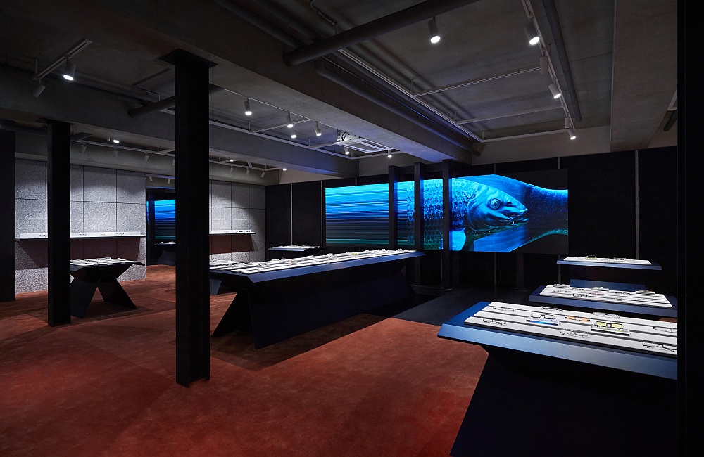 Im zweiten Stock werden ausschließlich Korrektionsfassungen präsentiert, die optische Linie der Marke, die seit dem 10. September weltweit online und in allen Gentle -Monster-Flaggschiffen erhältlich sind: fünfzehn handgefertigte Modelle innerhalb einer Kollektion von sechzig Fassungen in verschiedenen Farbvarianten, teils mit Verlaufsgläsern.