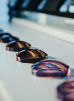 Verantwortlich für den reibungslosen Ablauf ist Frédéric Michelli, seit 2014 in der Firma, mit seinem Team aus bis zu sechs Augenoptiker*innen. Beim Rundgang durch die aufeinander folgenden, schlichten Werkstatträume erklärt er die einzelnen Verarbeitungsschritte an den insgesamt neun Stationen: von Blank Selection, Blocken, Schleifen der Korrektion, Polieren, über Reinigen/Beschichten, Randen und Gravieren der Brillengläser bis hin zum Einfassen und der abschließenden Qualitätskontrolle.