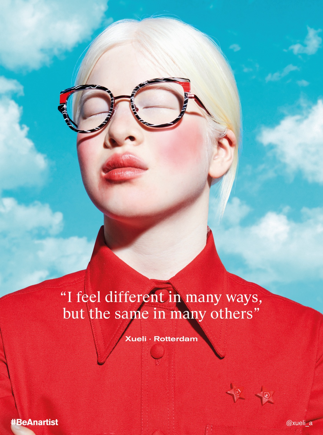 Etnia-Kampagne: Xueli (14 Jahre alt) wurde in China geboren und von ihren chinesischen Eltern verlassen, möglicherweise wegen ihres Albinismus, vielleicht auch wegen der Kombination mit dem Mädchensein. Sie wurde von einer Familie adoptiert und lebt jetzt in Rotterdam. Sie ist sehbehindert, hat mittlerweile die Kraft gefunden, ihre Geschichte zu erzählen und für all die Menschen zu kämpfen, die Albinismus haben.
