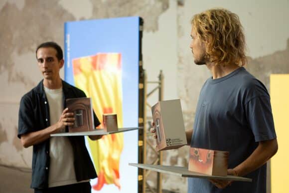 Auf dem Meller-Specs-Event in Barcelona: Creative Director Carles Martínez (links) bei der Präsentation von Kollektion und Sales-Materialien