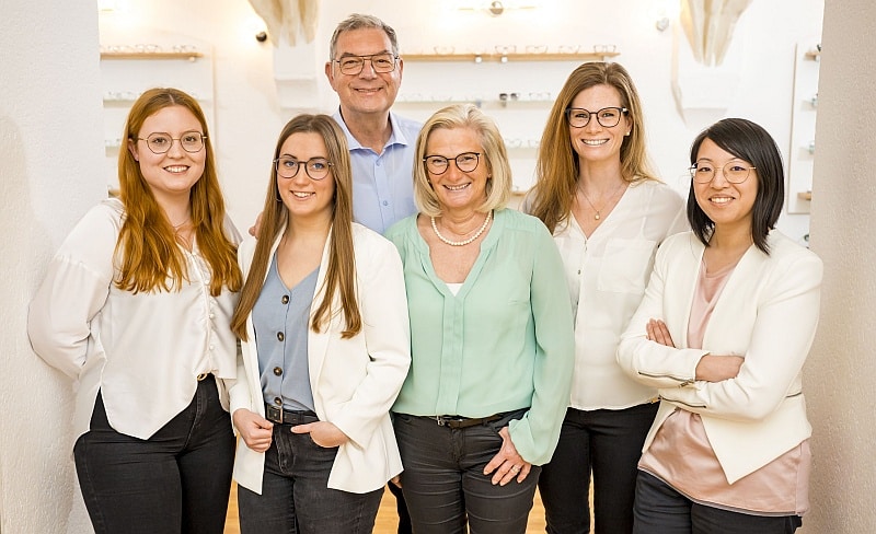Das Team von Optik Knapp in Gernsbach (von links): Anna Lena Zimehl, Katharina Reiser, Thomas und Andrea Knapp, Simone Tworuschka und Mai Linh Lien