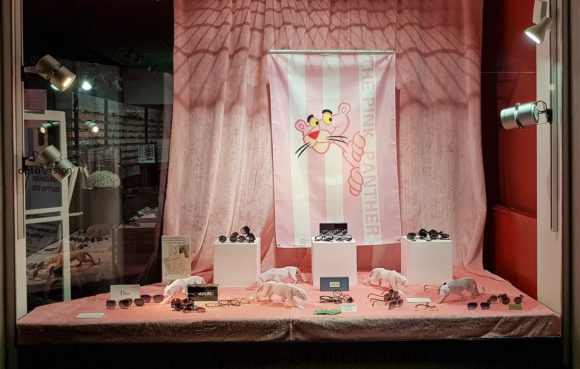 Schaufenster-Deko mit Pink Panther (Bild: Optiker Brökelschen )