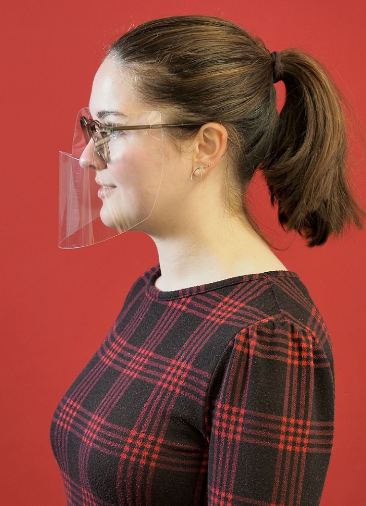 Unser „Covisier“ genanntes Brillenvisier kann man in Sekundenschnelle auf nahezu jeden Brillenbügel aufstecken, kein lästiger Kopfreif ist nötig. Mund und Nase werden durch das Visier abgedeckt, während die Augen durch die Aussparung im Visier ungehindert durch die eigene Brille sehen können, durch die sie ja auch schon geschützt sind.