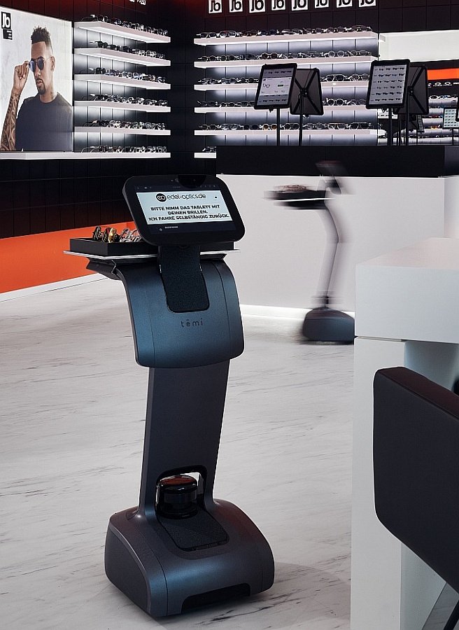 Im Flagship-Store von Edel-Optics in Hamburg hilft neuerdings ein Roboter bei der Brillenauswahl (Foto: Joseph Heicks/Edel-Optics)