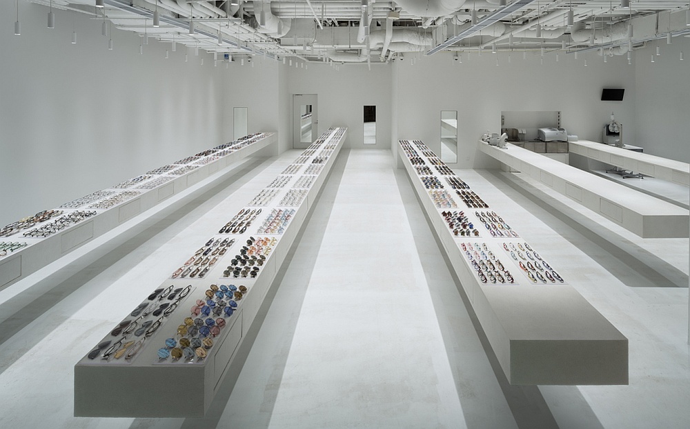 Schlichter, weißer Beton und sonst nur Brillen: Store des japanischen Brillenherstellers J!ns in Shanghai (Foto: Eiichi Kano)