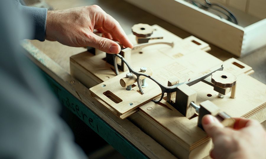 Echte Handarbeit: Zwischen Rohling und der fertigen Brillenfassungen liegen bei der Holzbrille etwa 80 Arbeitsschritte (Bild: © Eder Robert)