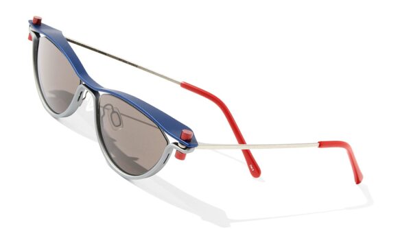 Die Gail-Spence-Fassung gibt es in drei Ausführungen, zwei davon als Sonnenbrille. Die leuchtenden Farben werden durch neu gestaltete, graue Bügel aus dünnem Titan ergänzt. „Wir sind dem ursprünglichen Design mit seinen schlichten, in den legendären Zylinder-Scharnieren zusammengeführten Strukturen treu geblieben und vollenden so den einzigartigen Look zwischen künstlerischem Raffinement und Minimalismus“, so Cathrine Haugerud, die den Relaunch betreut (siehe Interview).