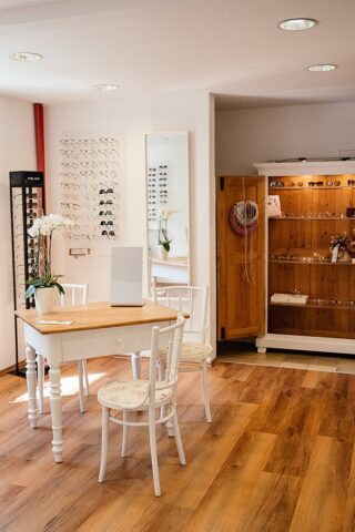 Kontaktlinsen oder fertige Brillen werden bei längeren Anfahrtswegen zugesendet. Reinigungsflüssigkeiten und Linsen der Hausmarke können bei Bedarf im Onlineshop bestellt werden, ebenso wie Etuis und Brillenketten. „Zum Shop auf der Website kam es wegen Corona. Brillenkettchen und Suncovers kamen später aus modischen Gründen dazu. Sie sind im Trend, gefallen auch uns“, so die Chefin.