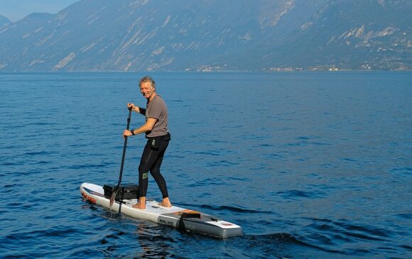 Der 53-jährige Stephan Gölnitz frönt auch dem Stand-up-Paddeln