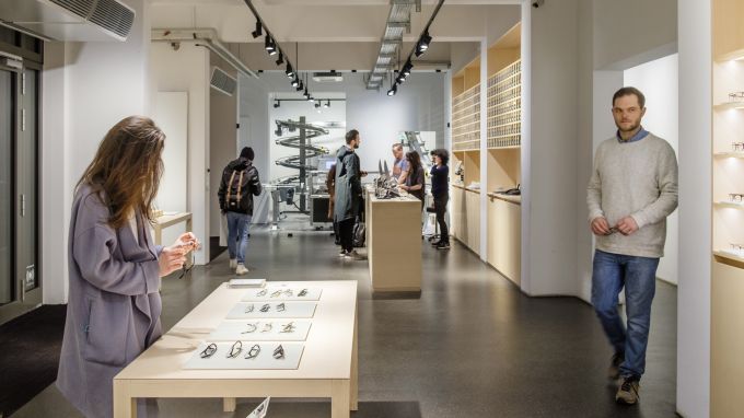Die Berliner Dependance umfasst rund 200 Quadratmeter. Der Ladenbau ist bewusst reduziert. Minimalismus rules – das gilt als Standard in der hippen Hauptstadt. Alle Mitarbeiter sind gelernte Augenoptiker. Mit Store-Managerin Stephanie Zehrendt beschäftigt das Label eine Meisterin. Derzeit gehen rund 35 Brillen pro Tag über die Theke, erklärt Zehrendt, die die Berliner Filiale seit dem Frühsommer leitet.