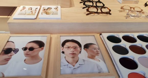 Yun Brillen store: das Brillenförderband ist von draußen gut zu sehen
