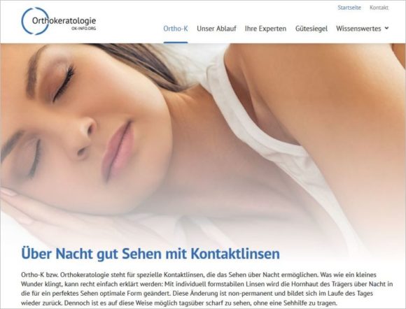 Die Verbraucher-Website www.ok-info.org der WVAO erstrahlt in neuem Glanz. Verbraucher können hier einen ausführlichen Einblick hinsichtlich des Verfahrens, der Voraussetzungen und des Ablaufs der Orthokeratologie erhalten. Neu sind ein Lexikon, eine Übersicht zahlreicher Studien zur Ortho-K-Thematik sowie Informationen zur Myopie-Prophylaxe.
