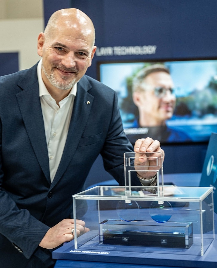 Öffentlich zu bestaunen war die mit der neuen „LayR Technology“ produzierte Veredelung „Solitaire LayR“ erstmals bei der opti 2024. Thomas Pfanner, General Manager für Deutschland und Österreich bei Rodenstock, zeigte am Messestand, bewaffnet mit einer Demo-Tafel und einer Demo-Box, was die neue Beschichtung alles zu bieten hat.