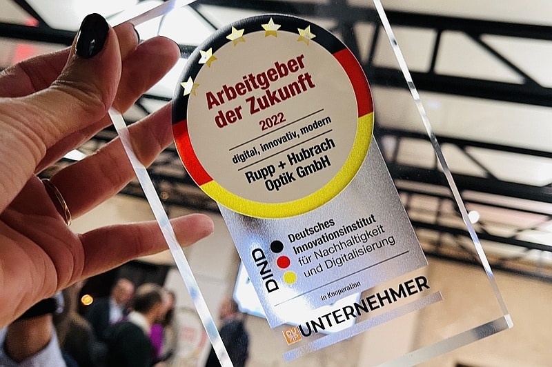 Der Bamberger Brillenglas-Hersteller Rupp + Hubrach darf sich über die Auszeichnung „Arbeitgeber der Zukunft“ freuen. Vergeben wird das Siegel vom „Deutschen Innovationsinstitut für Nachhaltigkeit und Digitalisierung“ (DIND) unter der Schirmherrschaft von Brigitte Zypries, Bundeswirtschaftsministerin a.D.