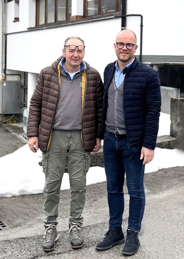 Guido Franchin (links) und Gianluca Cian vor dem OMM-Werk (Bild: OBE)
