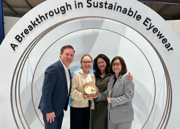 Silhouette gewinnt mit seinem Standkonzept Anfang Februar den ersten Platz beim „Stand Up For Green Award“ der MIDO. Die Verbindung von Ästhetik und Umweltbewusstsein überzeugte die Jury: Recycelter Karton und Teppiche aus wiederverwendetem Kunststoff unterstrichen das nachhaltige Gesamtkonzept.