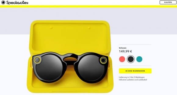 Seit 2. Juni kann man die Spectacle von Snapchat in Europa und damit auch in Deutschland kaufen. Wie in den USA sind auch hierzulande für den Verkauf Snapbot-Automaten an wechselnden Plätzen in der Republik unterwegs, aber man kann die Videobrille auch online erwerben.