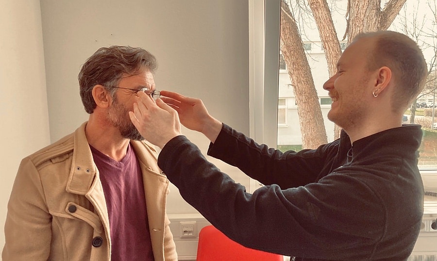 Hier die Anpassung einer fertigen Brille (Bild: Hochschule Aalen)