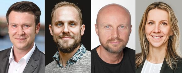 Vier Neuzugänge bei Topcon Deutschland (von links): Vincent Jock, Benjamin Krog, Martin Komor und Janin Herzig (Bilder: Topcon Deutschland)