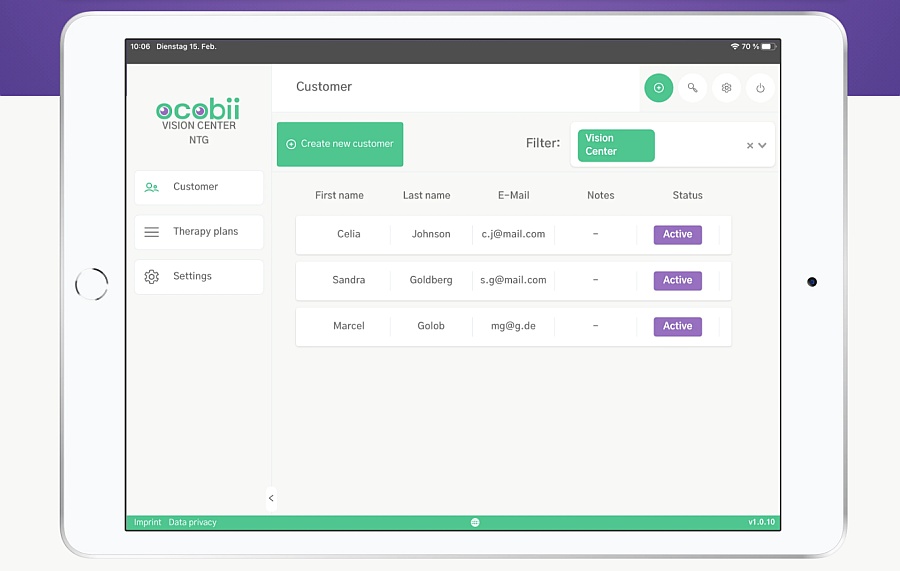 Unter my.ocobii.com kann sich der Augenspezialist im Portal registrieren, einloggen und beliebig viele Kunden anlegen. Der erste Monat gilt als Demo-Zeitraum für Augenoptiker. Danach kann man in den „Basic“- oder „Premium“-Tarif wechseln.