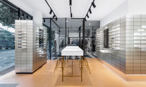 Der Flagshipstore Hannover wurde – wie alle eigenen Läden – von Creative Director Fabrice Aeberhard und seinem Team entworfen und soll die klare Linien- und Formensprache sowie die Schlichtheit der Produkte widerspiegeln. Das räumliche Farbkonzept werde durch eine raumübergreifende Systemwand aus champagnerfarbenem Metall verstärkt. Sie dient zur Präsentation der Brillen und wird für jeden Store individuell entwickelt.