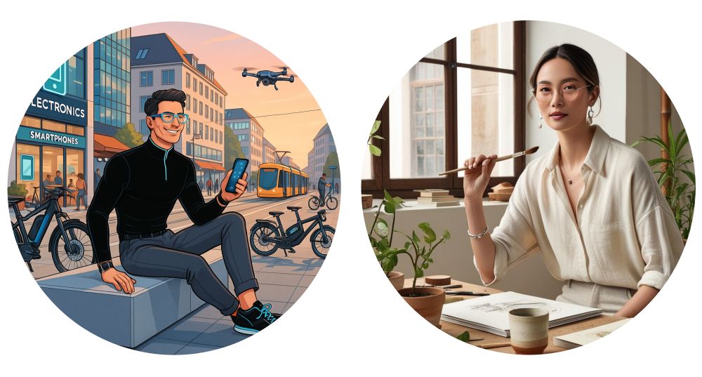 Personas gehen einen entscheidenden Schritt weiter. Sie beschreiben keine Statistik – sondern sind echte Sparringpartner in deinen Entscheidungs-Prozessen. Mit Vorlieben, Werten, Alltagsroutinen, Kaufmotiven, Unsicherheiten. Sie haben einen Namen, einen Stil, eine Geschichte. Und: Sie tragen Brille.