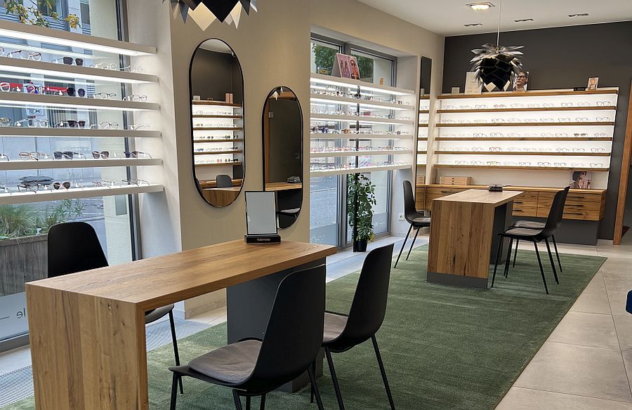 Feines Brillenhaus in der Kleinstadt in Nachbarschaft zu einem Filialisten. Stilvoll und persönlich geführt. Reduziertes Raumkonzept, Fokus auf Qualität, Nachhaltigkeit, persönliche Begegnungen. Die Kollektion verbindet natürliche Materialien, faire Produktion und hochwertiges Design.