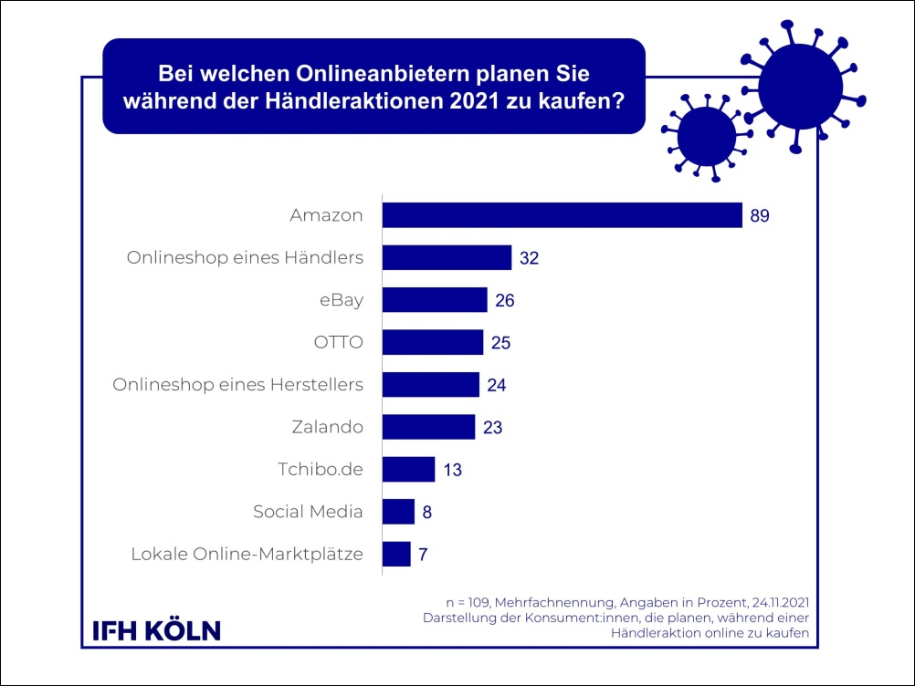 Rund ein Drittel beabsichtigt, in Onlineshops anderer Händler zu shoppen. Auf Platz drei der beliebtesten Onlineanbieter in der Schnäppchenwoche landet eBay (26 %).