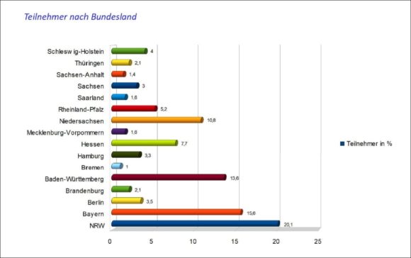 Bei der Umfrage wurden Beschäftigte aller Bundesländer berücksichtigt, so Beutler Saghari & Partner. Die Größe der Bundesländer stehe in Relation zur Anzahl der Teilnehmer.