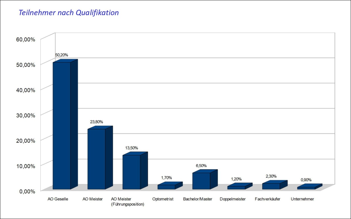 Die Umfrage basiert auf den ausgewerteten Daten von Fachkräften (Augenoptiker-Gesellen) und höher qualifizierten Fachkräften (Augenoptiker-Meister, Doppelmeister, Optometristen, Bachelor/Master). Unternehmer und Fachverkäufer spielten bei der Umfrage kaum eine nennenswerte Größe.