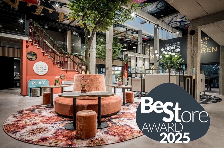 Die MIDO-Jury lobte das Interieur-Design und den kunden-orientierten Ansatz: Ein ikonisches Geschäft in Belgien mit Elementen wie der einladende Empfangsbereich mit Bar, die spielerische Kinderecke und die clevere Integration von Shop-in-Shops für High-End-Marken machten das Geschäft zu einem echten Erlebnis.